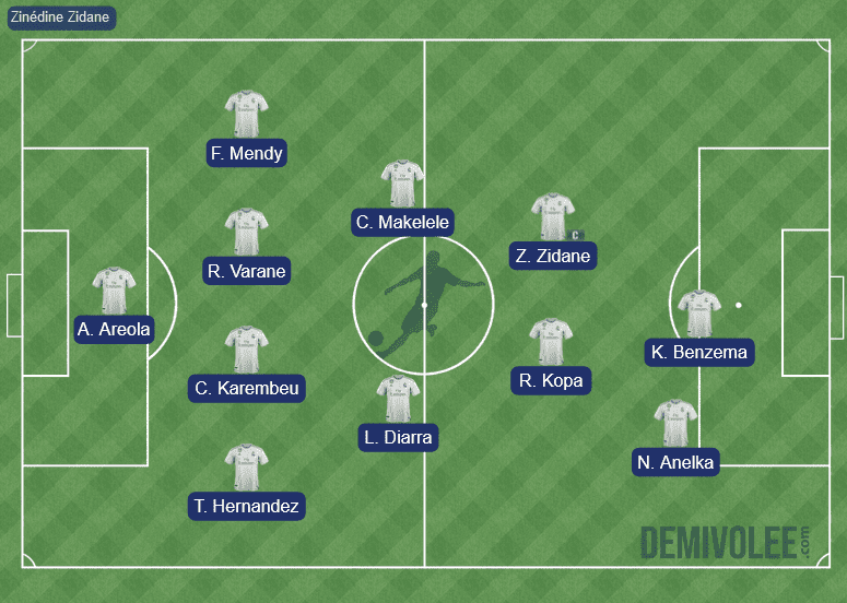 Et puis vint Zinédine Zidane. Le meneur de jeu tricolore, considéré comme le meilleur joueur du monde, débarque au Real en 2001 en pulvérisant le record mondial des montants de transferts. Le champion du monde/champion d’Europe/Ballon d’Or fête le centenaire du Real en exécutant une titanesque reprise de volée en finale de la Ligue des champions. Il sera la figure de proue des Galactiques pendant cinq ans, tout en restant un titulaire en puissance chez les Bleus.